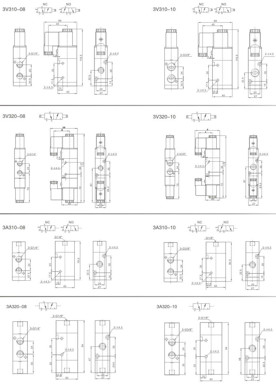 進氣=出氣=G1/4” 排氣=G1/8”