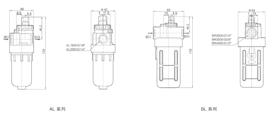 | 接管口徑 | G1/8" | G1/4" | G1/4" | G3/8" | G1/2" | |