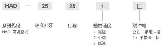 | 型號 | 沖程 | 最大吸收能量(NM) | 最大吸收能量/小時(NM) | 最大有效能量(KG) | 最大影響速度 (M/S) |