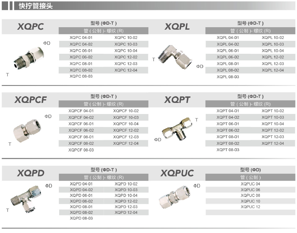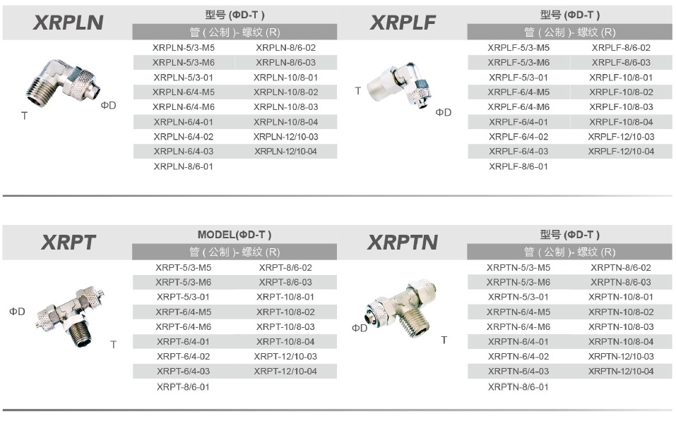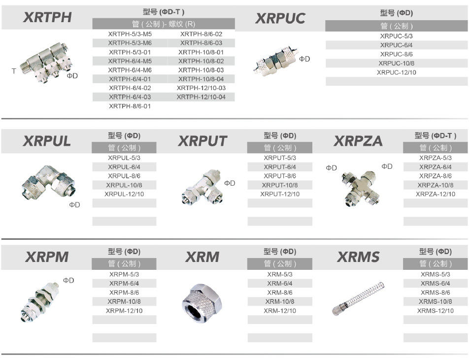 0.8-16bar(根據(jù)氣管)PU,PE,Nylon 6-11-12