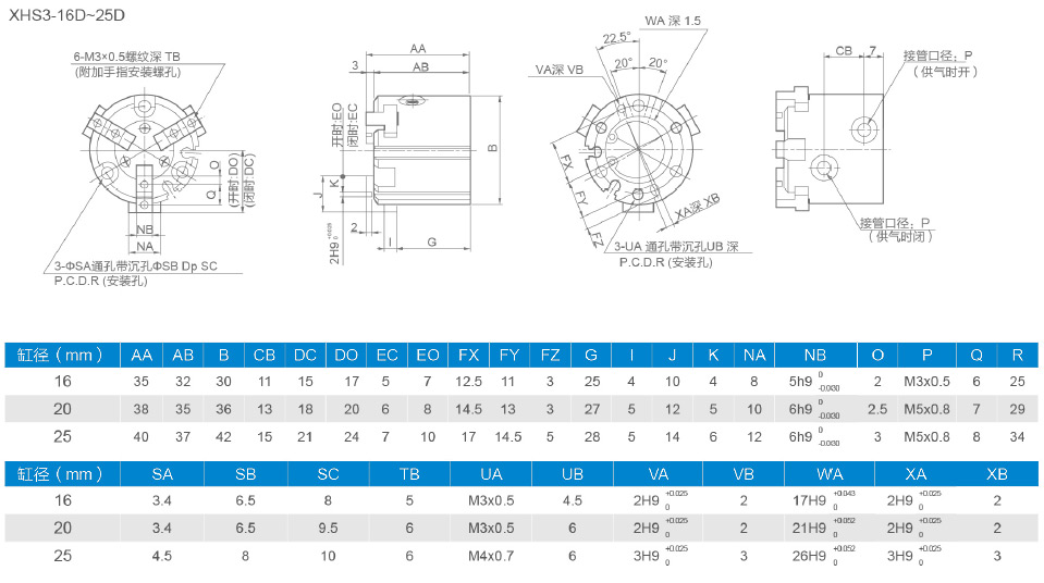 - XHSH系列平行開閉型氣動手指
