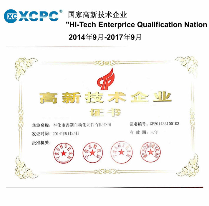 2014年9月,鑫潮氣動(XCPC Pneumatic) “國家高新技術(shù)企業(yè)”復(fù)審?fù)ㄟ^'